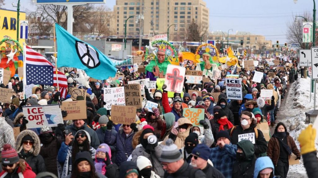 В США в воскресенье 11 января прошли массовые протесты против деятельности Миграционной службы (ICE) США. Причиной стал смертельный выстрел агента ICE в Миннеаполисе 7 января, жертвой которого стала 37-летняя поэтесса Рене Гуд, мать троих детей.